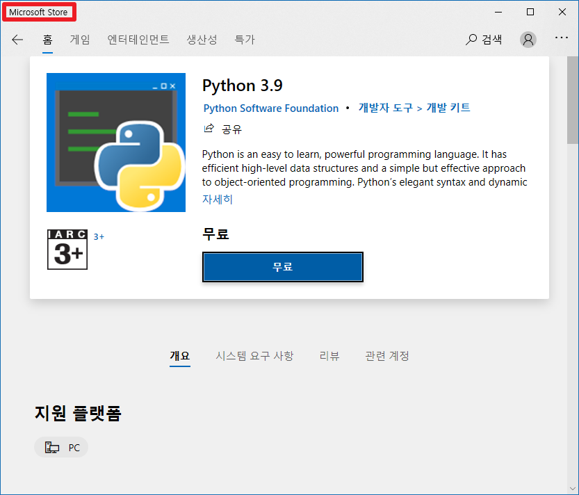 windows10의 경우 사용자 환경에 따라 이러한 단계를 거치지 않더라도 이미 microsoft store를 통해 설치가 되어있거나, 파이썬을 실행 시킬 수 있는 환경이 세팅 되어있는 상태일 수도 있다.