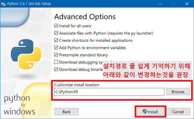 ※ 권장설치경로: C:\python39